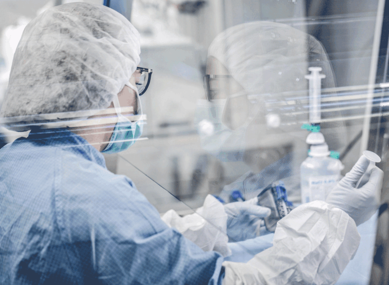 Überzeugen Sie sich selbst von der sorgfältigen Herstellung einer parenteralen Lösung im Reinraumlabor